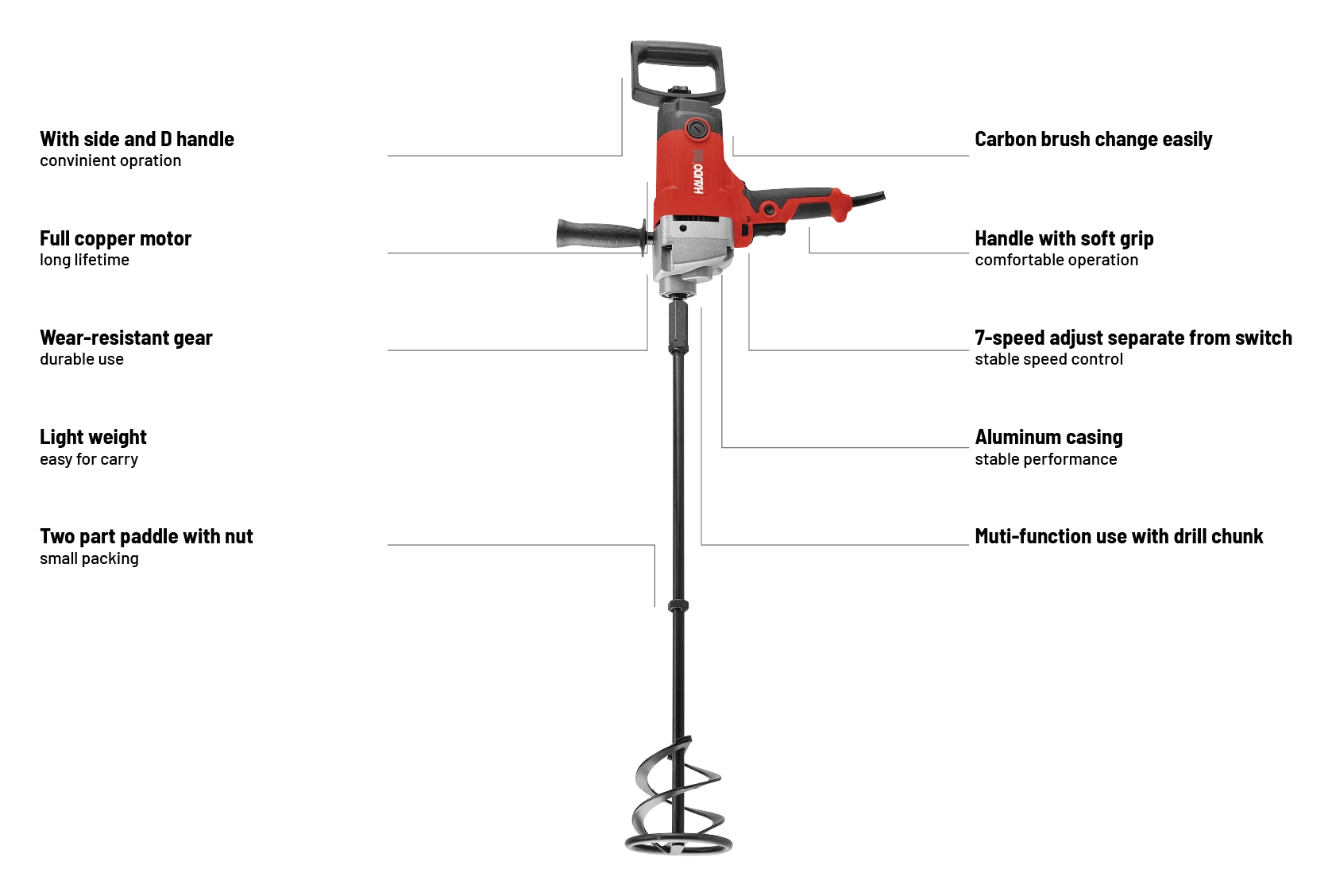 • Dual use: mixing+drilling